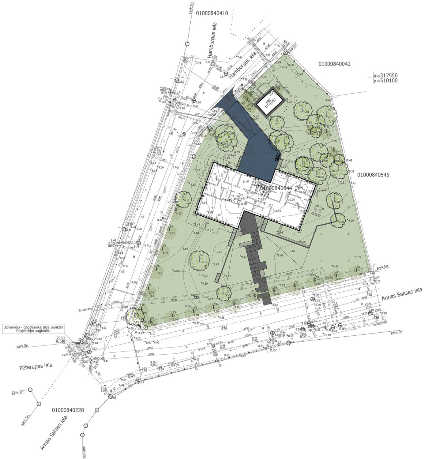 Apbūves priekšlikums mazstāvu dzīvokļu ēkai Rīgā, Mežaparkā.